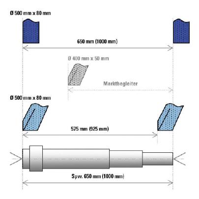 Durch die geschickte Auslegung der S33 ist es möglich eine bis zu 1/3 verlängerte Schleiflänge gegenüber dem Wettbewerb zu erreichen. Im Zusammenhang mit Schleifscheibenanordnung rechts ist immer die Reduktion der effektiven Schleiflänge bei einem Einsatz unter 30 Grad zu beachten.