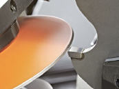 Die hohe Masse der Schleifeinheit und die Steifigkeit der Schleifspindeln ermöglichen es, Kreissägeblätter mit Durchmessern von 1440 Millimetern mikrometergenau zu schärfen. Die Zahngeometrie der Schneidkanten werden automatisch vermessen und unterschiedliche Fasen- und Schrägschliffwinkel in einer Einstellung geschliffen.