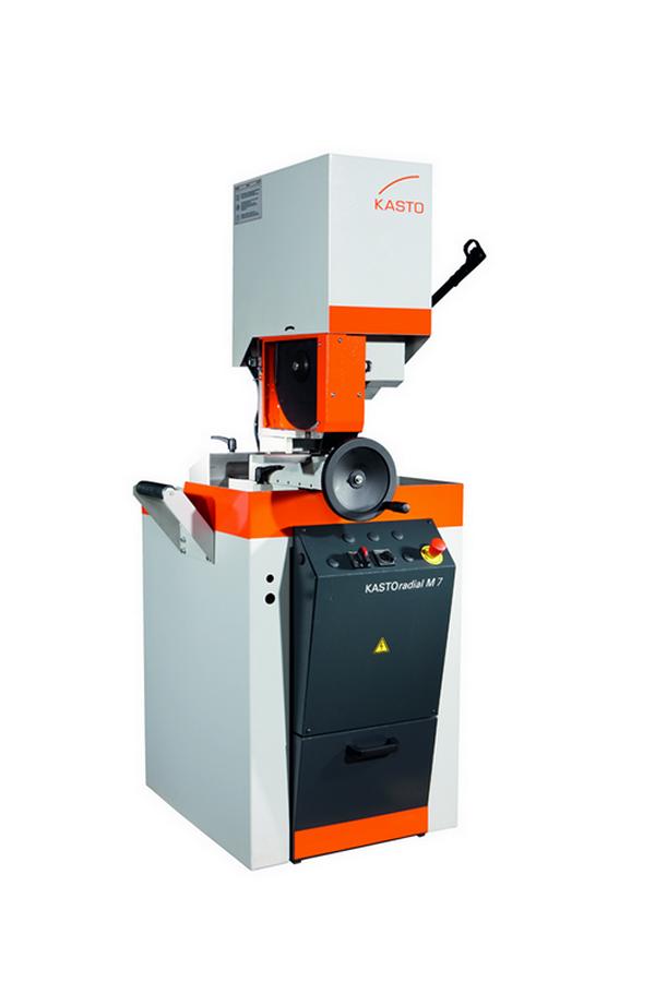 Mit der KASTOradial M 7 präsentiert KASTO eine manuelle Metallkreissäge für Gerad- und Gehrungsschnitte. Mit zwei Schnittgeschwindigkeiten und einem Sägeblattdurchmesser von 315 Millimetern ist sie für universelle Anwendungen in Werkstätten geeignet. Ihr Schnittbereich beträgt je nach Schnittwinkel bis zu 100 Millimeter bei Rund- und 135 x 80 Millimeter bei Flachmaterial. Die Maschine ist serienmäßig mit einem Spannstock mit Gegenspanneinrichtung für einen gratarmen Schnitt, einer Kühlmitteleinrichtung, einer Materialauflagerolle sowie einem Stiftspäneräumer und einer Späneschublade ausgestattet.