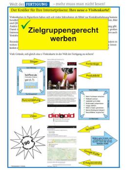 Mit unserer elektronischen Visitenkarte können sich Unternehmen optimal präsentieren. Nun haben wir auch zur Darbietung von Produkten ein neues Medium: die Multimedia-PDF-Ausgabe unseres Fachmagazins ›Welt der Fertigung‹. Hier sind in Anzeigen Produktvideos einbindbar, die beispielsweise Maschinen, Software oder Werkzeuge bestmöglich vorführen. Ideale Möglichkeiten für die B2B-Vermarktung!