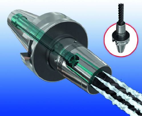 Iscars neues Schrumpffutter Srkin-CX stellt die punktgenaue Kühlung und Schmierung der Schneiden während des gesamten Zerspanens sicher und sorgt für längere Standzeiten des eingesetzten Werkzeugs. Möglich macht dies die Jet-Kühlung entlang des Werkzeugschafts. Da die Kühlung nicht unterbrochen wird, verringert die Werkzeugaufnahme zudem das Risiko eines thermischen Schocks und verhindert, dass sich Aufbauschneiden bilden. Die neuen Schrumpffutter verbessern die Oberflächengüte der bearbeiteten Werkstücke, sind zum Hochgeschwindigkeitsfräsen geeignet und sorgen für eine sehr gute Spanevakuierung, was Ausbrüche der Schneiden vermindert.