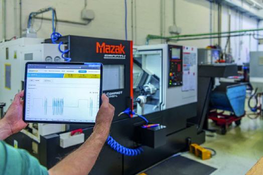 smartblick bildet den Zustand des Maschinenparks in Echtzeit ab und ist mit CNC-Systemen selbst älterer Bauart kompatibel. Die Installation der Sensoren und deren Kalibrierung können vom Anwender selbst vorgenommen werden, die Einrichtung von smartblick dauert pro Maschine nur rund 20 Minuten. Aus den fortlaufend übertragenen Spindeldaten entsteht sodann eine präzise Darstellung der Maschinenzustände: Seit wann welche Maschine mit welcher Leistung in Betrieb ist, welche Arbeitsschritte eines Auftrages gerade aktuell sind oder in welchem Zeitrahmen die nächsten Wartungsarbeiten fällig werden.