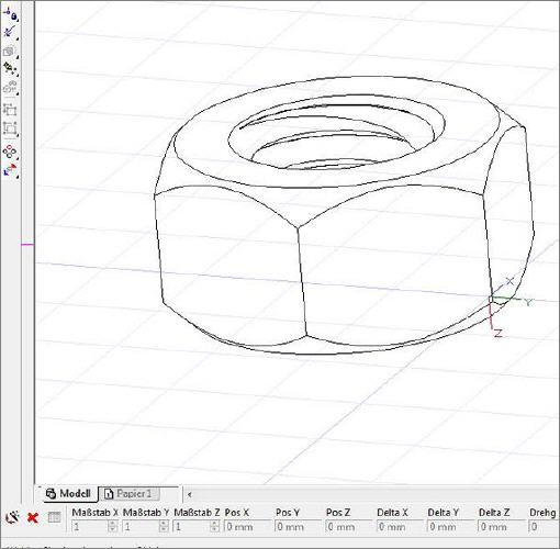 TurboCAD hat etliche Hürden aufgebaut, die das Zeichnen einer echten 3D-Mutter erschweren. Beispielsweise ist es nicht mehr möglich, den Schraubengenerator aufzurufen, wenn die Mutter komplett fertig ist und nur mehr das 3D-Gewinde erzeugt werden müsste. TurboCAD will also ausgetrickst werden. Um die korrekte Mutter inklusive dem Gewinde zu erstellen, muss direkt nach dem Zeichnen des Zylinders die Schraube erzeugt, anschließend die beiden Teile vereint und schließlich die 3D-Differenz vorgenommen werden, um das Gewinde zu erzeugen.