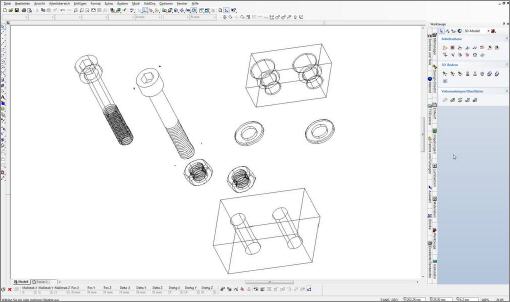 Eine Auswahl an 3D-Normteilen wird in TurboCAD zwar schon mitgeliefert, doch genügen diese nicht immer allen Ansprüchen. So sind beispielsweise die parametrischen Muttern zwar leicht in der Größe anpassbar, doch werden diese leider ohne Gewinde angezeigt. Auch Zylinderschrauben mit Innensechskant sucht man in der Bibliothek vergebens. Gründe genug, eigene Normteile anzufertigen, was eine Sache weniger Stunden ist. Lohn der Mühe sind Zeichnungen, die mit teureren CAD-Systemen nicht besser erstellt werden könnten.
