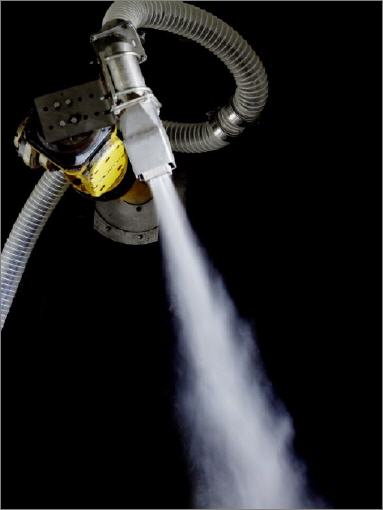 Die gute Reinigungswirkung basiert auf dem Zusammenspiel des gesättigten Dampfs mit einem Hochgeschwindigkeitsluftstrom. Beim Austreten des Dampfstrahls aus der Düse wird dieser rundum durch erwärmte und auf Hochgeschwindigkeit beschleunigte Luft gebündelt und fokussiert auf die zu reinigende Oberfläche geleitet. Dabei verhindern die hohe Strömungsgeschwindigkeit der Luft und die Eigenschaften des Dampfs eine Vermischung der beiden Medien.