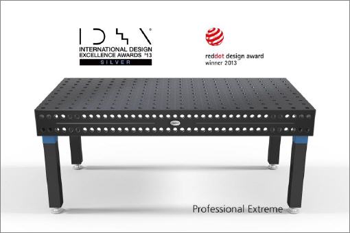 Abgesehen von einigen kleinen Farbveränderungen hat der Schweißtisch alle Belastungen unversehrt überstanden. Professional Extreme überzeugt nicht nur durch seine außergewöhnliche Härte und Funktionalität sondern auch durch sein exklusives Äußeres. 2013 wurde er mit dem red dot für hohe Designqualität ausgezeichnet und erhielt beim USDesignwettbewerb IDEA, den „Silver Award“.