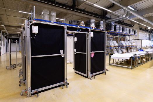 Der Laserschutz umfasst also passive Vorhänge, Kabinen- und Arbeitsplatzauskleidungen, Schlauchpakete für Maschinen und Leitungen wie auch Laborfenster-Rollos. Der aktive Schutz, also das aktive Sensortextil findet Einsatz bei höheren Laserleistungen (typisch ab 500 bis 1000 Watt) und kann ebenso in Vorhangform und Schwenkarmgestellen eingesetzt werden, bis hin zur vollständigen, flexiblen Einhausung eines ganzen Arbeitsplatzes (Kabine). Eine Besonderheit des aktiven Sensortextiles ist die Möglichkeit, kleine konfektionierte Flächen systemintegriert in Lasermaschinen zu verbauen. Also Schutz, bevor ein Strahl überhaupt unkontrolliert austreten kann.