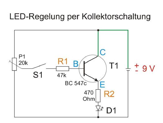 Soll hingegen der Transistor als Regler oder Verstärker eingesetzt werden, ist die Kollektorschaltung die richtige Wahl.