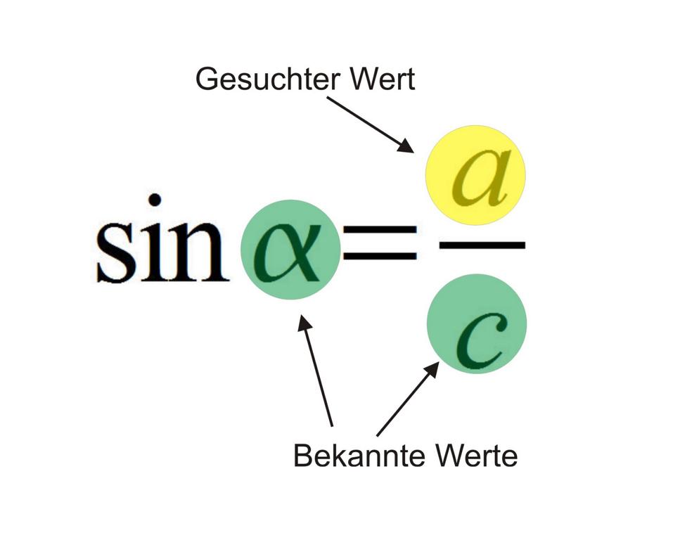 Die Sinus-Funktion wird ebenso verwendet, wenn der Winkel Alpha und die Strecke c gegeben sind und die Länge a berechnet werden soll.