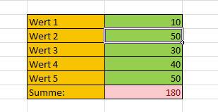 Soll nun die Summe aus den Zahlenwerten berechnet werden, so gibt es zwei Wege: