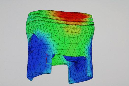 Aber auch die Verformung von Kurbelwellen oder Motorkolben unter Last ist simulierbar. Das Ergebnis der Berechnung lässt sich nahezu in Trickfilmqualität anschaulich ausgeben. Die einzelnen Sequenzen sind übrigens durch einfaches Verschieben eines Buttons anwählbar, was die Möglichkeit eröffnet, besonders interessante Stellen explizit zu untersuchen.
