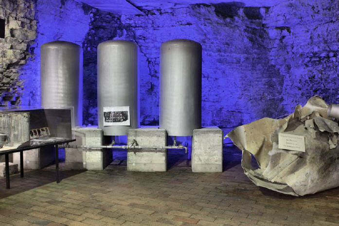 - Schweres Wasser diente im Haigerlocher Reaktor als Regulator der Neutronen. Dieses wurde in Behältern gelagert, von wo aus es für Experimente in den Reaktor gefüllt wurde. (7/9)